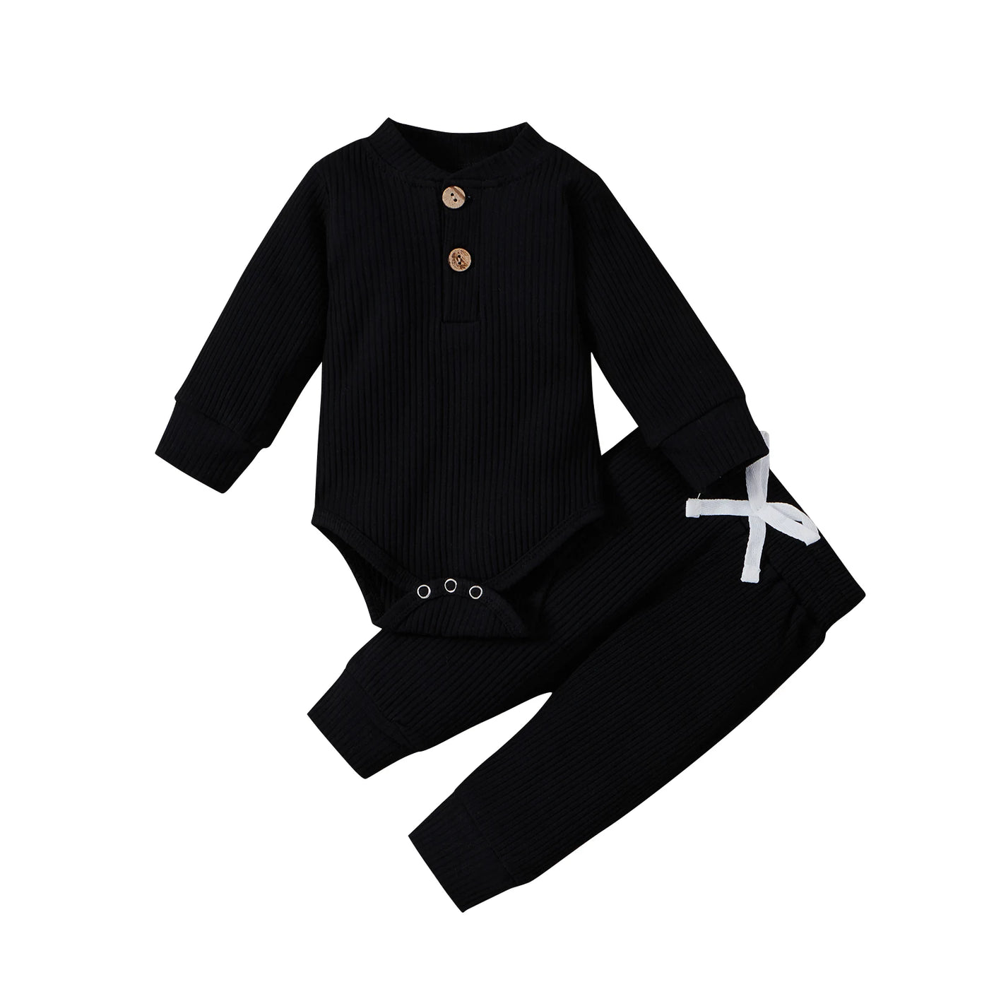 Infant Newborn Baby Girl Boy Spring Autumn Ribbed/Plaid Solid Clothes Sets Long Sleeve Bodysuits + Elastic Pants 2Pcs Outfits - Red / Newborn